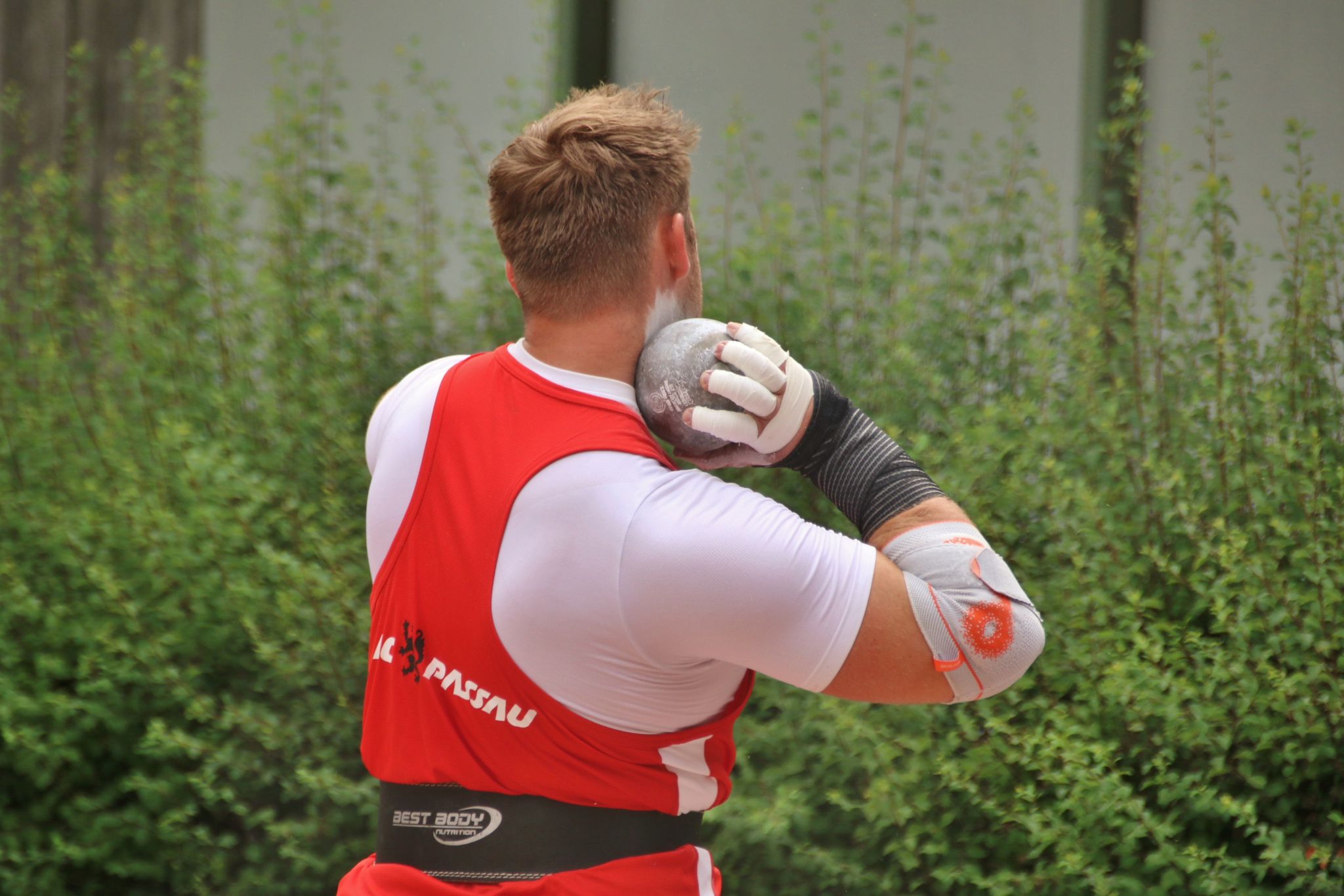 Zum vierten Fall in Folge gewann René Hamberger den Titel des Bayerischen Meister in der M30. Nach Trainingspause und nächtlicher Rückkehr aus dem Urlaub rief die körperliche Verfassung am gleichen Tag nicht nach Höchstleistung. Nach drei Stößen um fünfzehneinhalb Meter rutschte Hamberger im letzten Versuch noch ein 16-Meter-Stoß raus. Mit 16,08 Metern distanzierte er den Zweiten um dreieinhalb Meter.