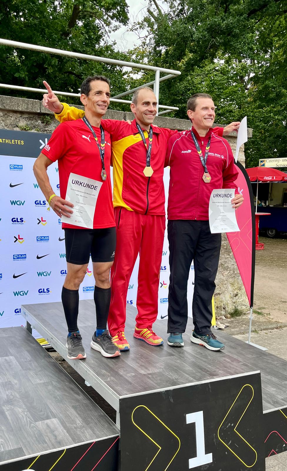 Seinen deutschen Vizetitel verteidigte Bernhard Schneider bei den dreitägigen Deutschen Meisterschaften der Masters in Gotha. Der 43-ährige gewann erneut Silber über 400 Meter Hürden in der M40. Unangefochten siegte in herausragenden 56,88 Sekunden Matti Herrmann (SG Vorwärts Frankenberg) vor Schneider in 61,76 Sekunden; Bronze ging an Benjamin Frerich (Team Voreifel, 62,77 sec). Die Farbe der Medaille stimmte, seine Saisonbestzeit steigerte der Haarbacher um 13 Hundertstel, war jedoch mit der Zeit nicht zufrieden. Eine 60er-Zeit war das Ziel gewesen. Nachdem bereits die erste Hürde nicht passte, er seinen Rhythmus nicht fand und viel Zeit an den Hürden liegen ließ, war zeitlich nicht mehr drin.