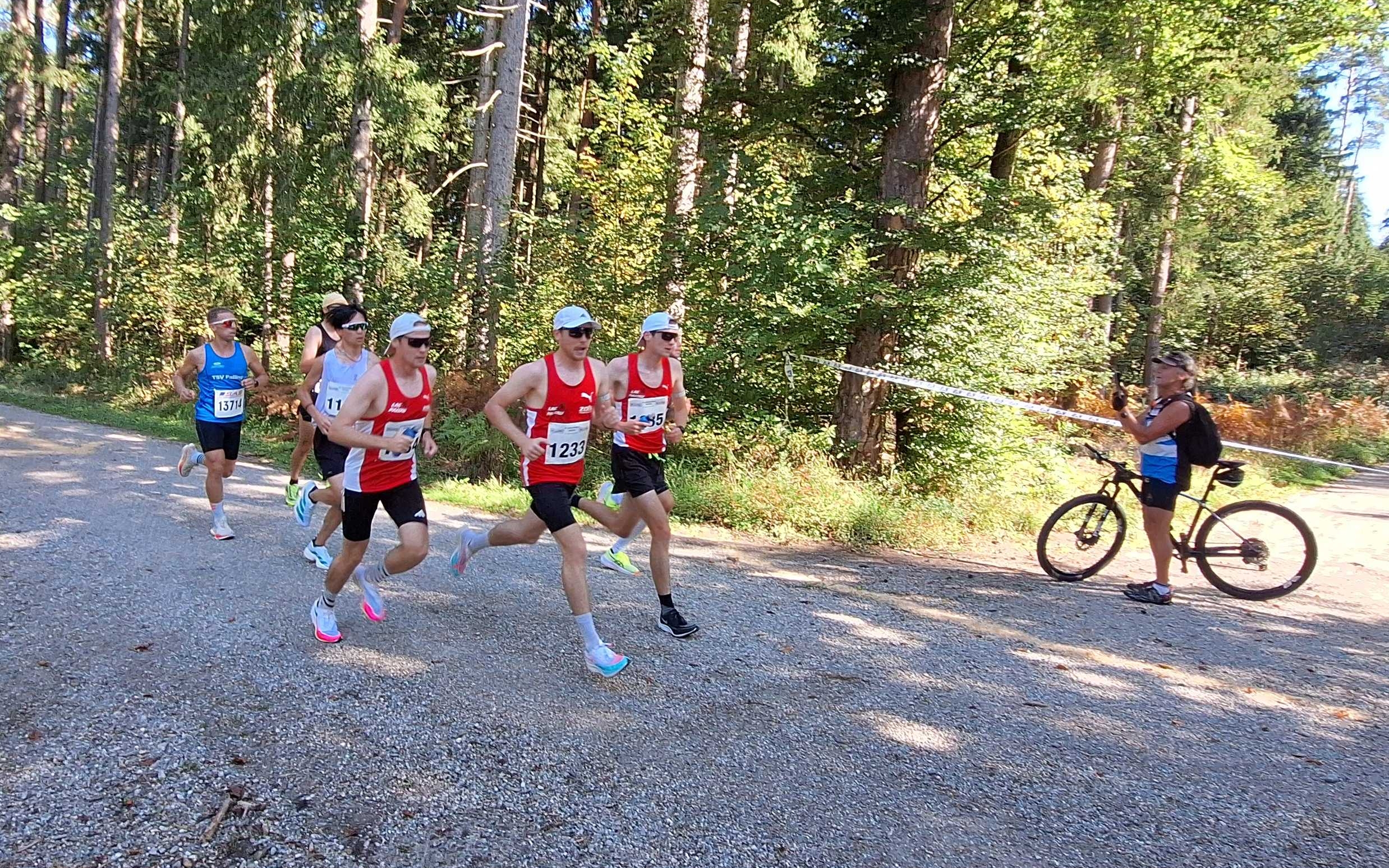 Der Verlauf der Route über weite Strecken durch den Forst linderte etwas die Hitze. Diesen Vorteil kompensierte allerdings sogleich wieder der feine Schotter auf den links und rechts leicht abfallenden Forststraßen. Felix Adler entschied das Familienduell um Haaresbreite zu seinen Gunsten, zeitgleich mit Zwillingsbruder Lorenz (27). Nach Auswertung der Transponder und des Einlaufbildes setzte das Kampfgericht Felix Adler in 1:11:59 Stunden auf Rang eins. Nur drei Sekunden dahinter kam Jonathan Adler (23) in das Ziel. Mit über eineinhalb Minuten Rückstand folgte der Vierte, der vereinslose Tobias Grünwald.