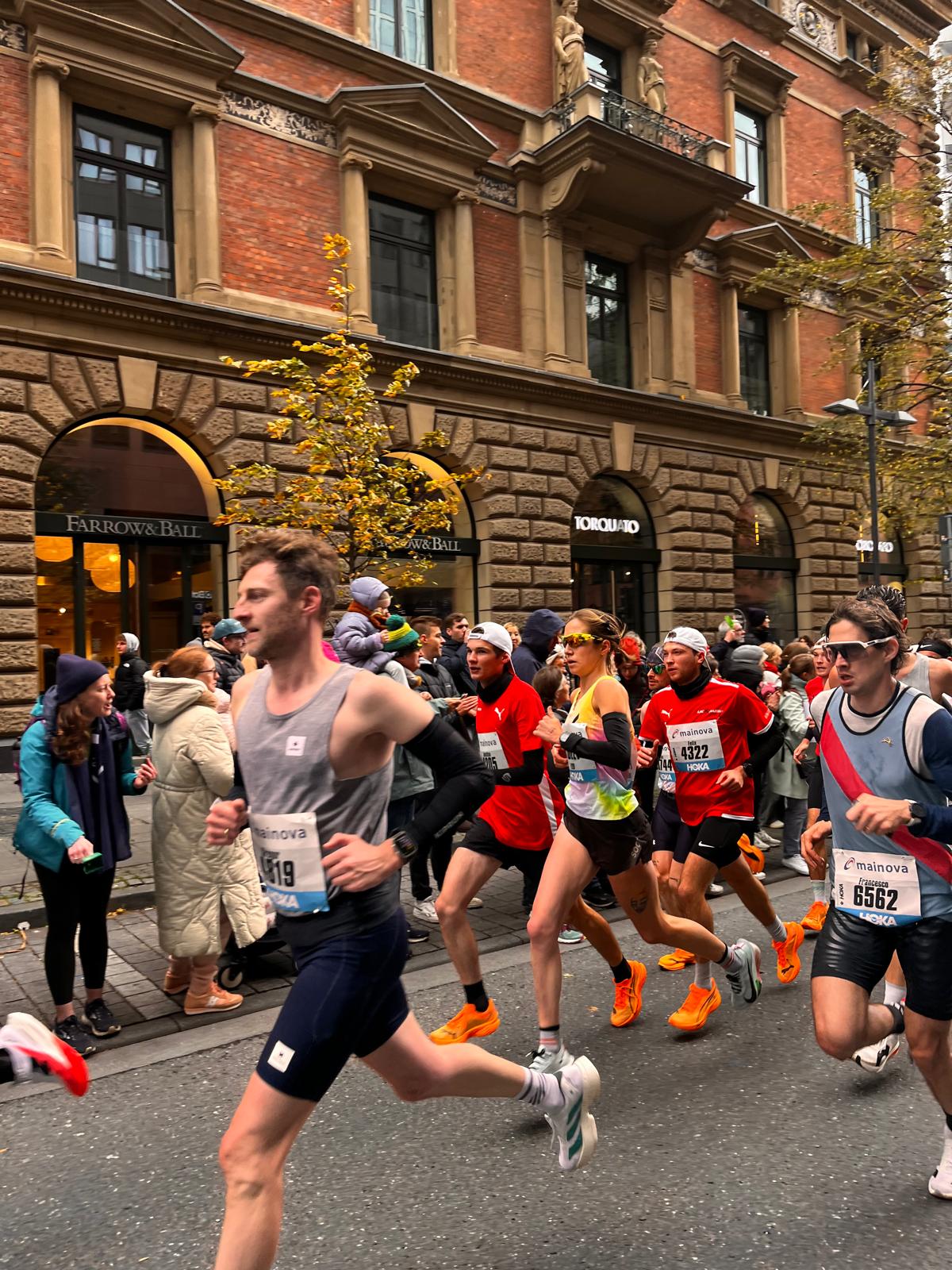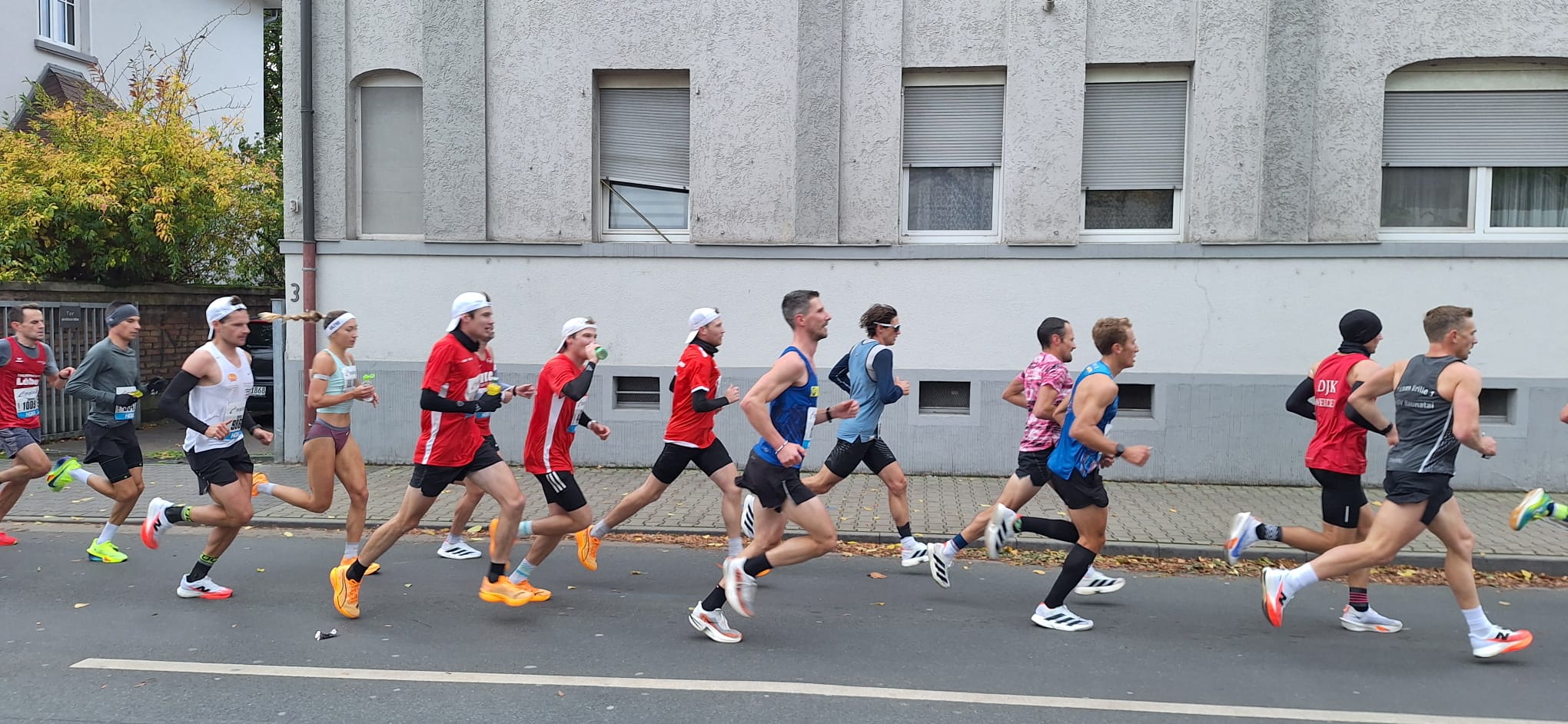 Hektisch ging es nach dem Start in der Innenstadt der deutschen Börsenmetropole zu. Vier Kilometer lang wechselte permanent das Tempo, bis sich Gruppen mit der gleichen Zielzeit gebildet hatten. Rund dreißig Läufer visierten eine Zeit von 2:28 Stunden an, Kilometerschnitt 3:30 Minuten. In dieser Gruppe „schwammen“ die drei LAC-Athleten „mit“. Wie ein Uhrwerk rollte der Marathonzug die ersten dreißig Kilometer dahin, mit 10-Kilometer-Splits von 35:01, 35:03 und 35:07 Minuten. Er profitierte von zwei Tempomachern der am Schluss zweitbesten Europäerin, der Ungarin Lili Vindics-Toth (2:28:15).