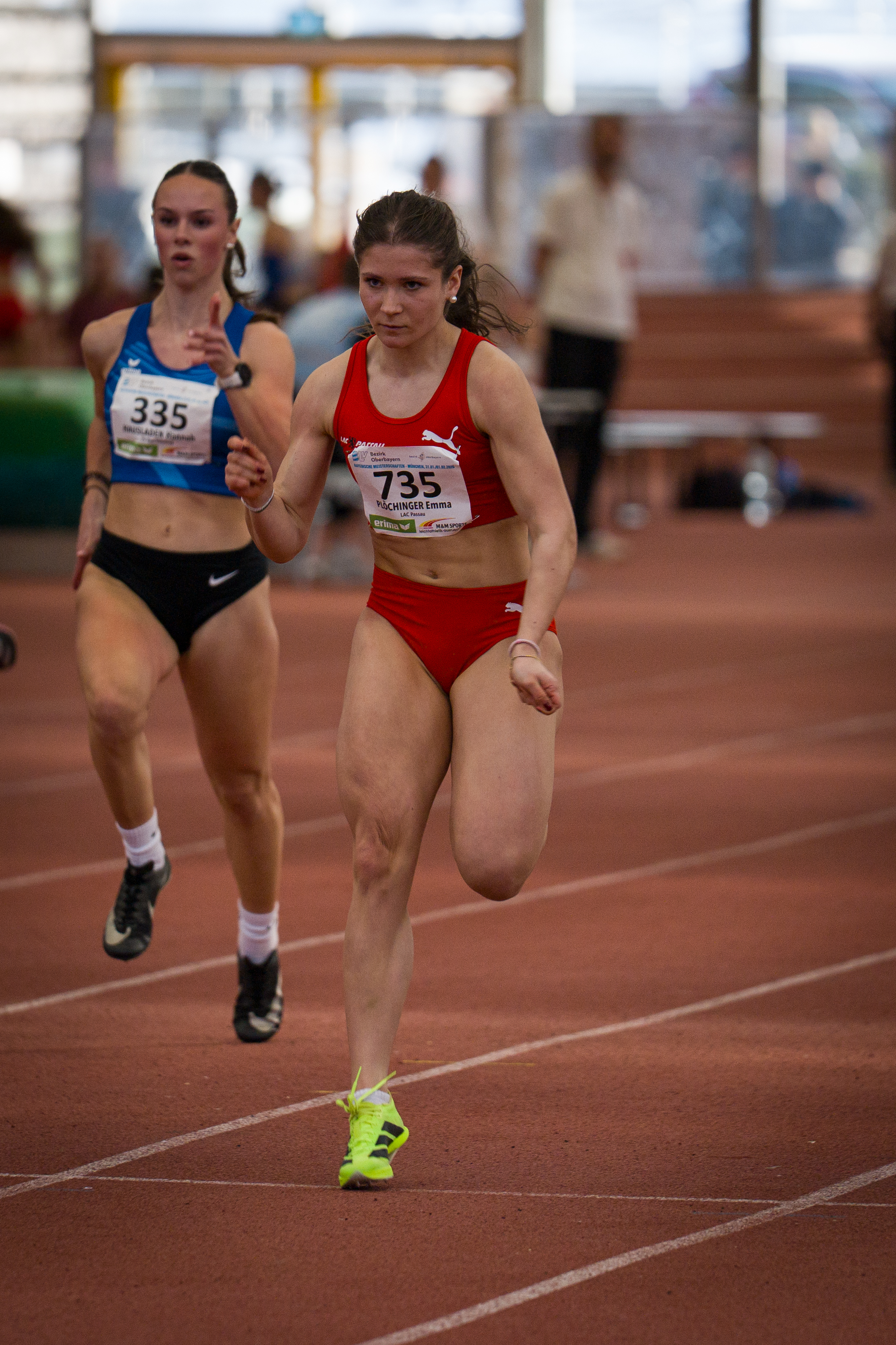Im weiblichen U20-Sprintfinale überzeugte Emma Plöchinger mit Bronze in 7,64 Sekunden (VL 7,76 sec). Sie blieb nur um den Hauch einer Hundertstel über ihrer Bestzeit. Zum Silberrang fehlten drei Hundertstel. Der entglitt ihr durch die Rücknahme des Körpers auf der Ziellinie. Ihre starke Form untermauerte sie über 200 Meter. Um sieben Zehntel schraubte die 18-Jährige als Vierte ihren Hausrekord auf 25,10 Sekunden nach unten, freute sich über Bestzeit und DM-Norm.