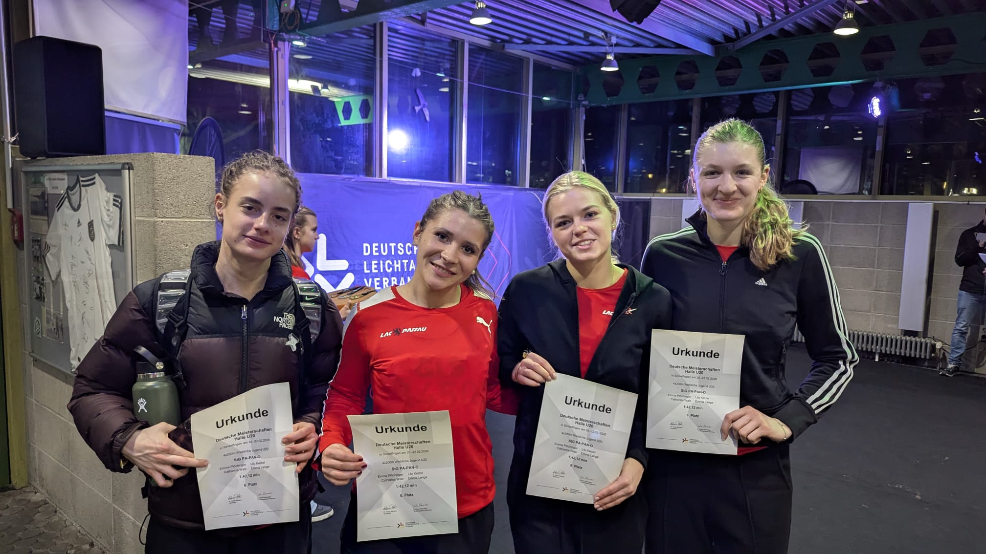 Eine glänzende Vorstellung bot die 4 x 200-Meter-Staffel der StG PA-PAN-O. Emma Plöchinger, Lilo Ketzel, Catharina Waltz (LAC Passau) und Emma Lange (TuS Pfarrkirchen) sprinteten über die vier Hallenrunden auf den sechsten Platz. Im sechsten von neun Zeitläufen lief Plöchinger bestens an, setzte sich an die Spitze. Ketzel sicherte den Vorsprung von zwei, drei Metern, wechselte auf Waltz. Insbesondere in der zweiten Kurve zeigte diese ihre läuferischen Qualitäten. Lange hielt trotz harter Konkurrenz dagegen, brachte den Staffelstab als Erste in 1:42,12 Minuten in das Ziel – Rang sechs in der Endabrechnung. Die Medaillen gingen an den SC DHfK Leipzig, den LAC Erdgas Chemnitz und die Eintracht Frankfurt.